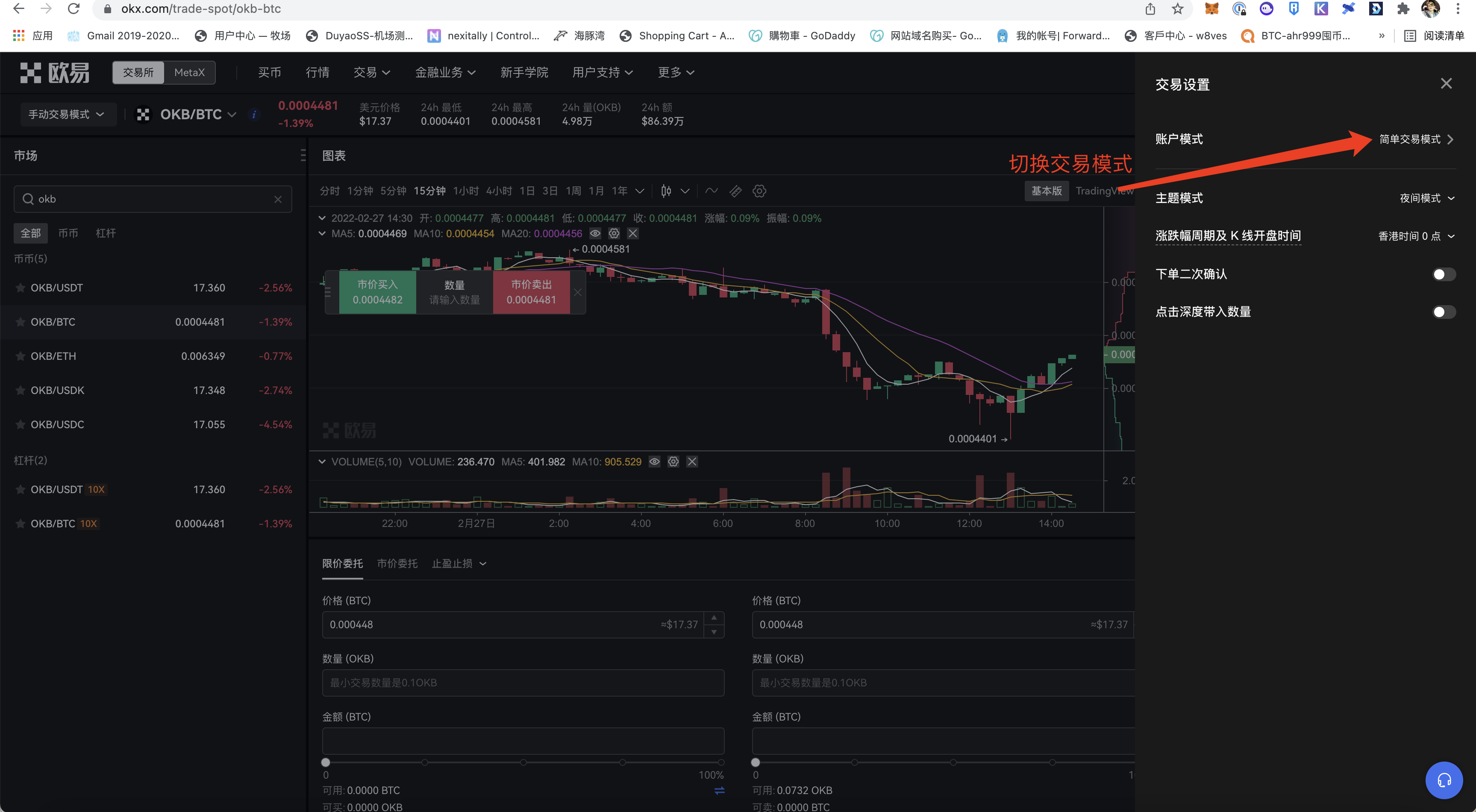 假设我们现在就要借okb,来参加活动,首先打开ok网址,https://www.okx.com/trade-spot/okb-btc
