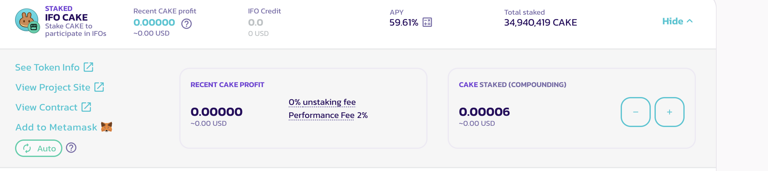 我自己选择第三个,manual cake,这个是随时可以撤出来的,前两个是自动复投的,如果你前三天就撤出来了,会收取你2%的手续费