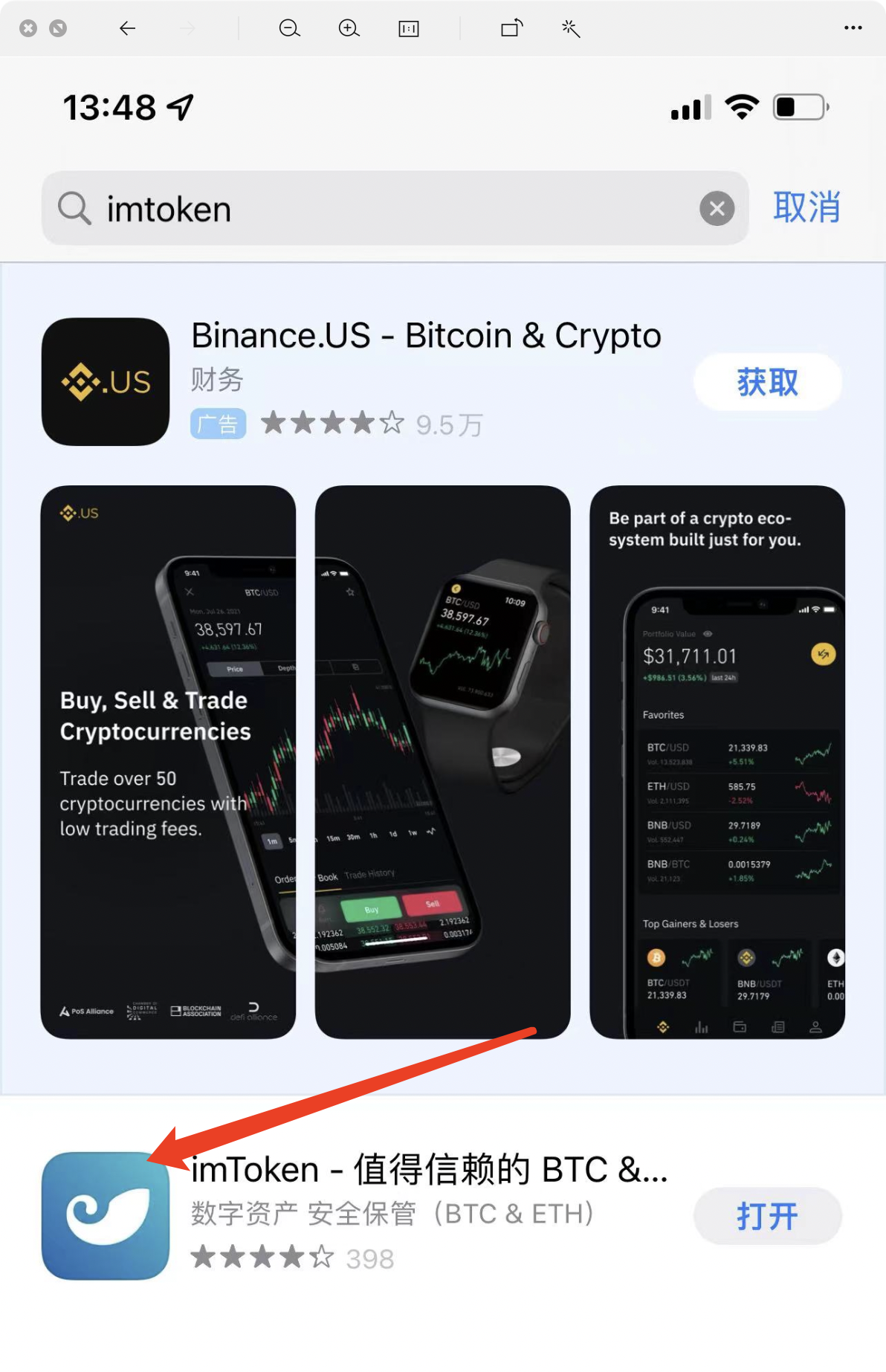 首先打开app store,然后搜索imtoken (海外id)