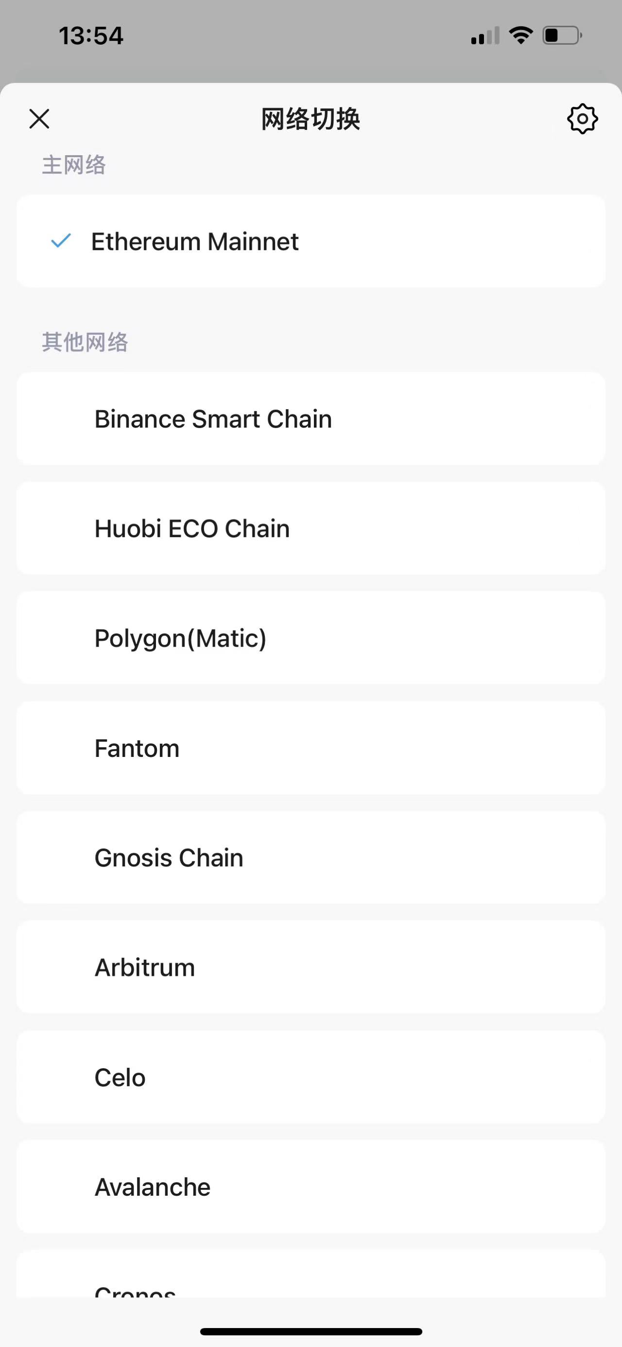 下载,然后打开,和小狐狸钱包一样,你需要创建或是导入,这一步就略过了,在新建好了以后,你可看到有各种网络,这是imtoken自带的,不需要添加,小狐狸是要手动添加的。